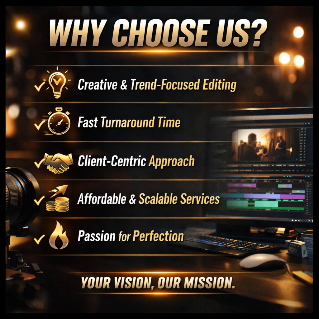 Our vision is to help creators and businesses build a powerful digital presence through visually stunning and strategically edited videos that don’t just look good — but also perform.